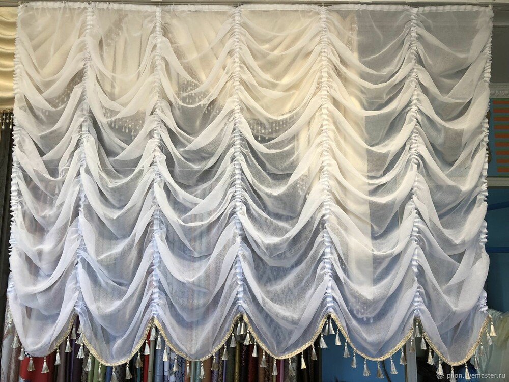 Французская штора тюль белый, карниз верёвочный