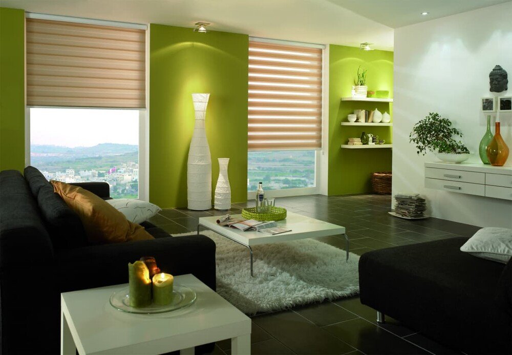 - Универсальность. Открытые рулонные шторы-жалюзи «день-ночь» подходят для любых помещений – от спальни до кухни, и легко сочетаются с другими элементами декора.