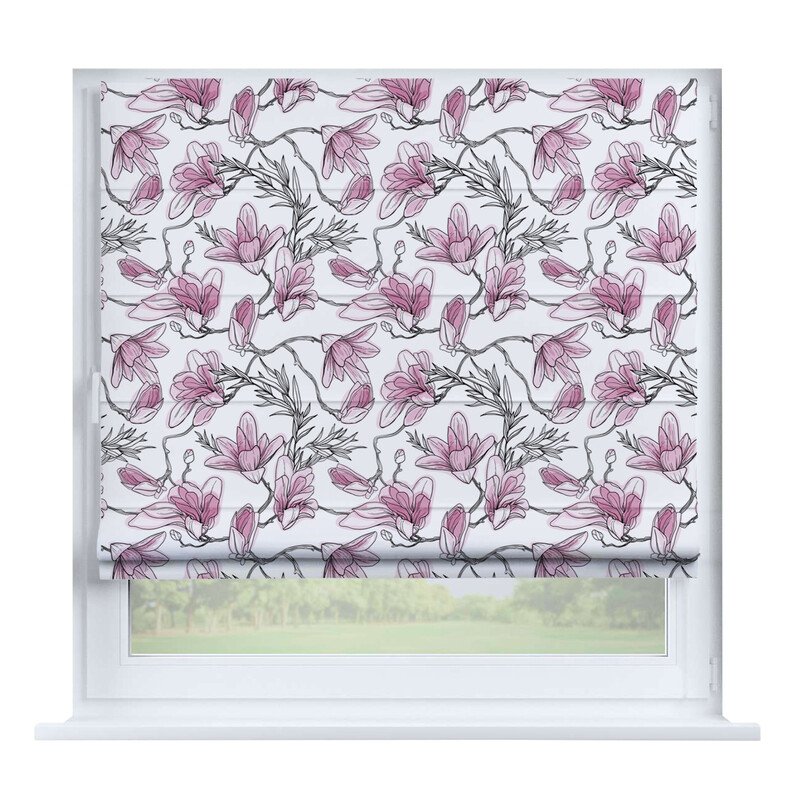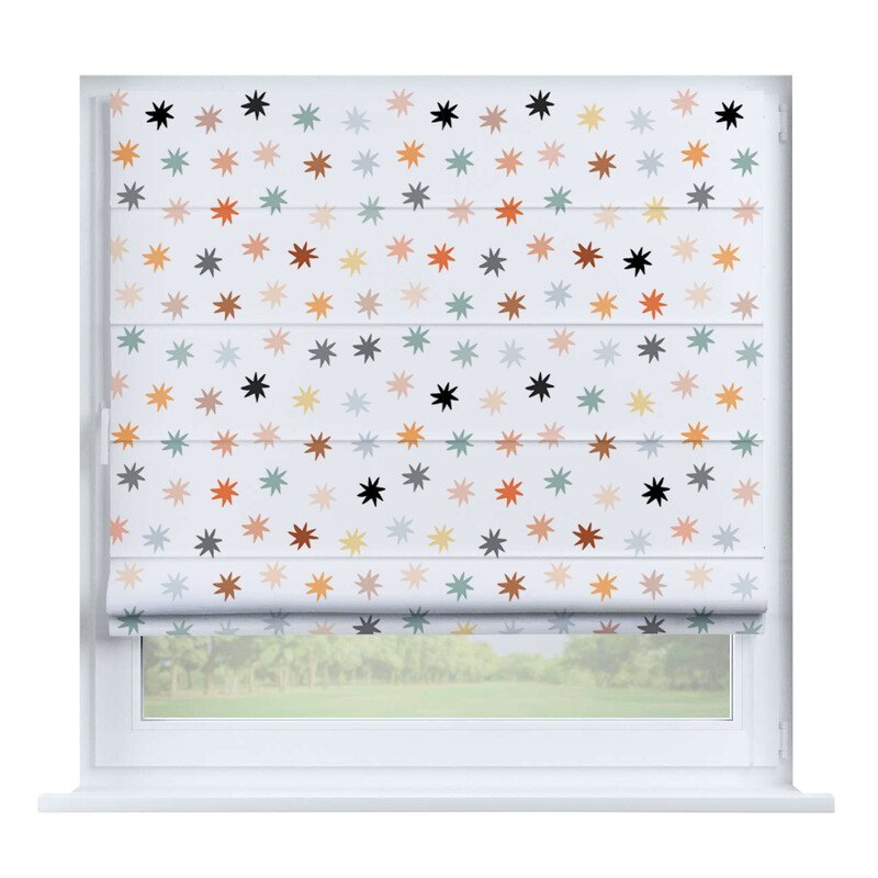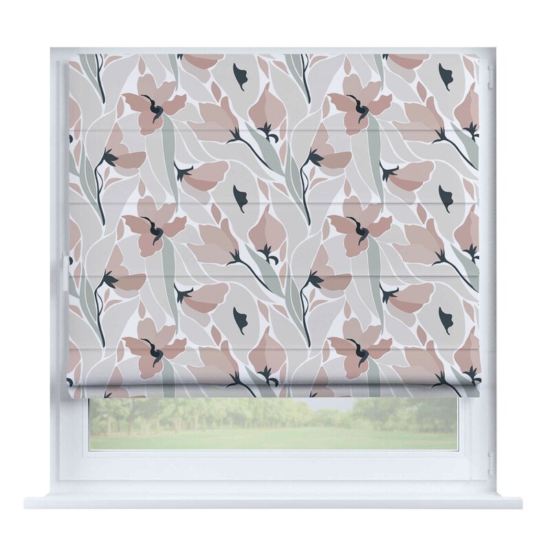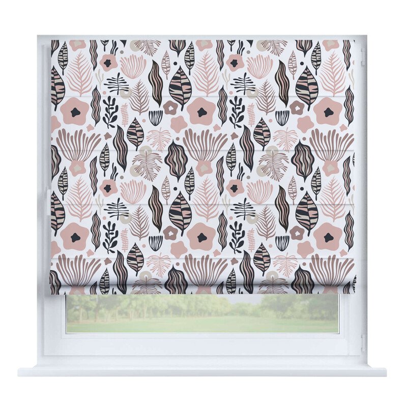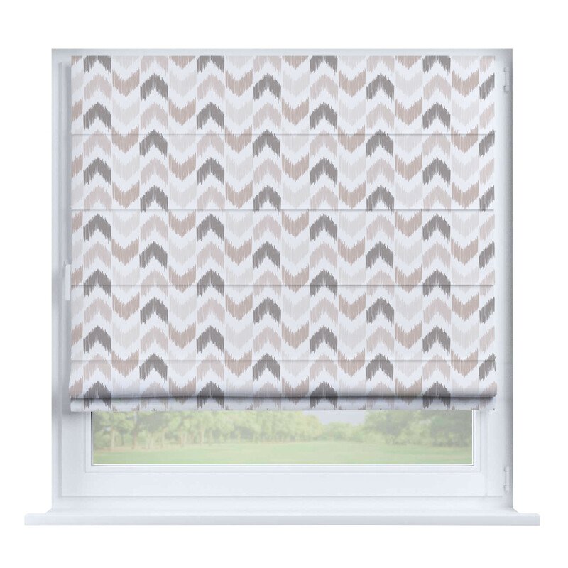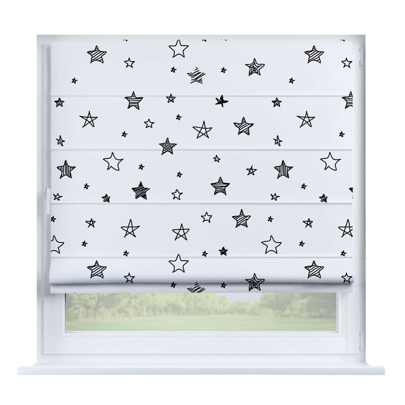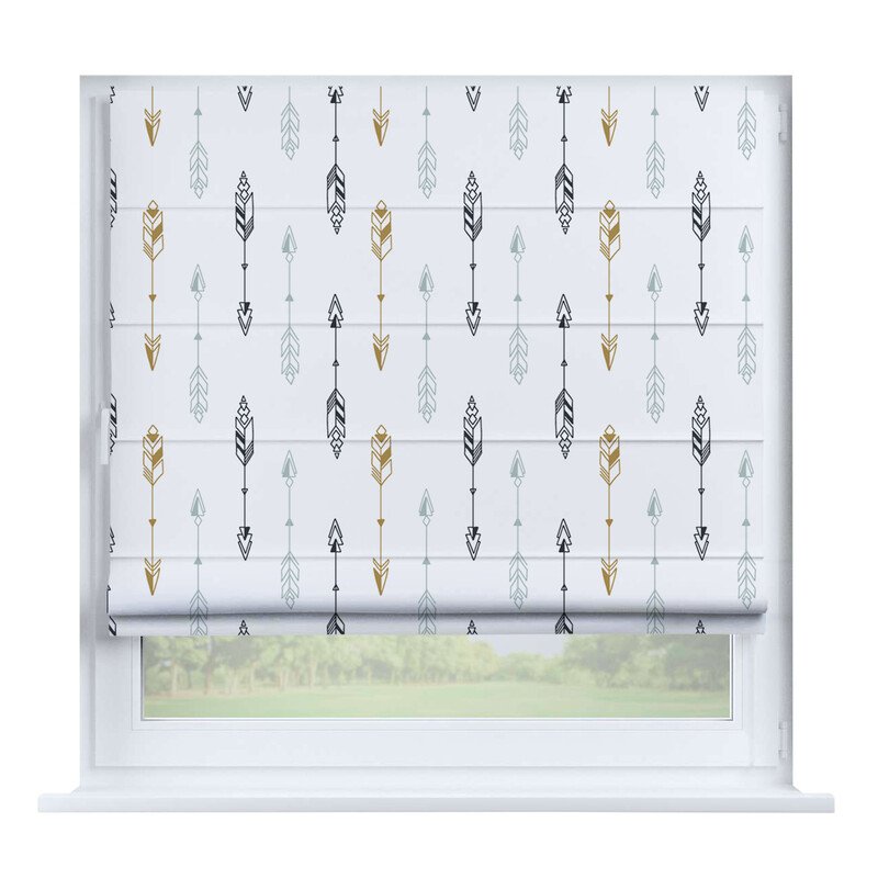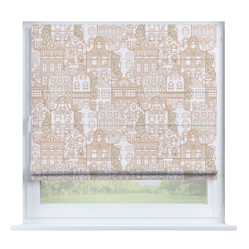 Короткие шторы в спальню. При подъеме тканевое полотно образует горизонтальные складки. Подходят для минималистичных, современных интерьеров. Экономят пространство и позволяют точно регулировать уровень света.