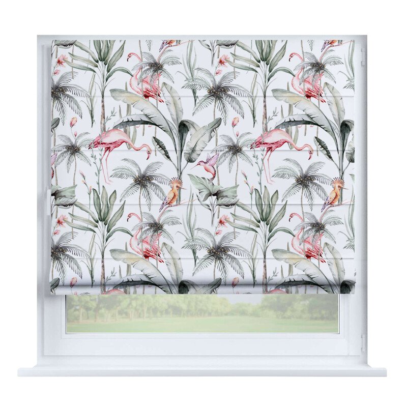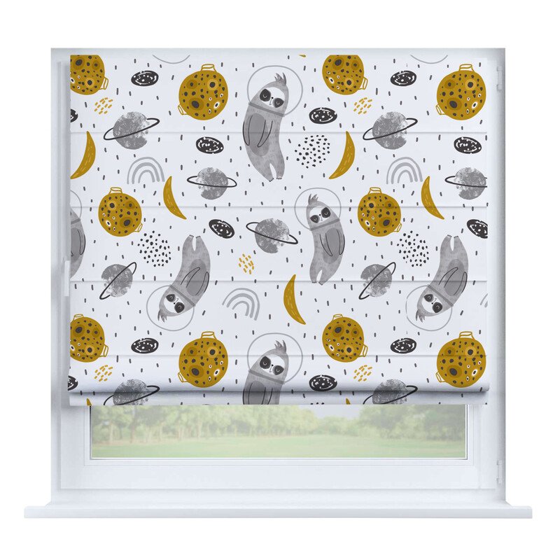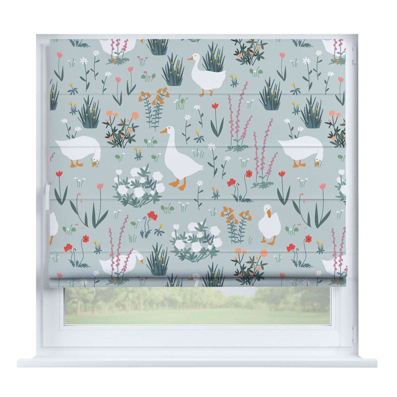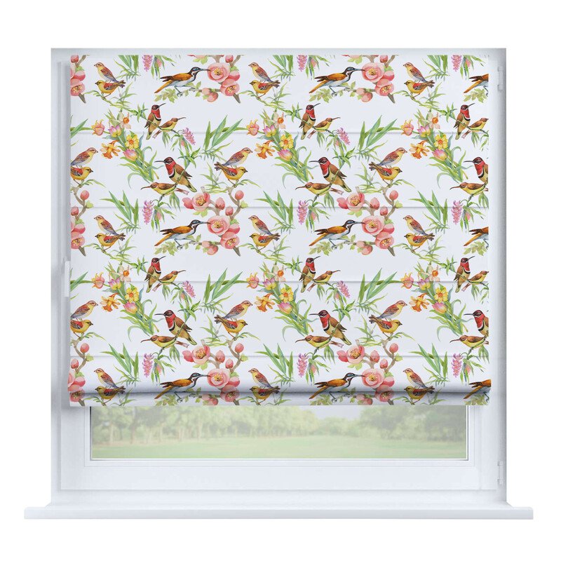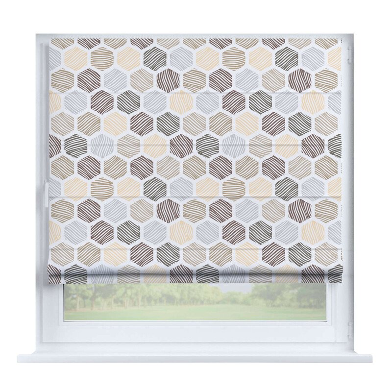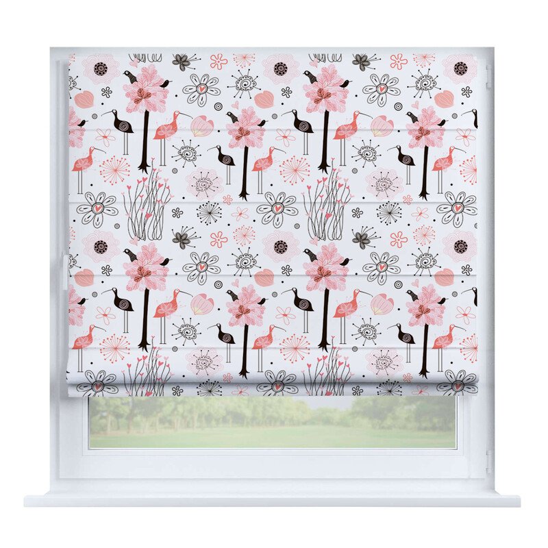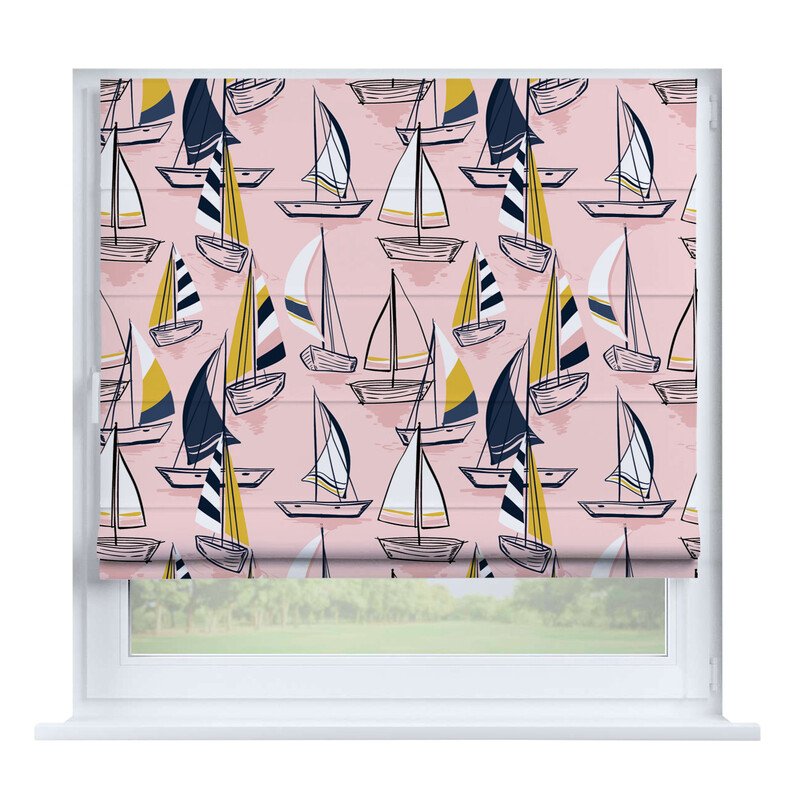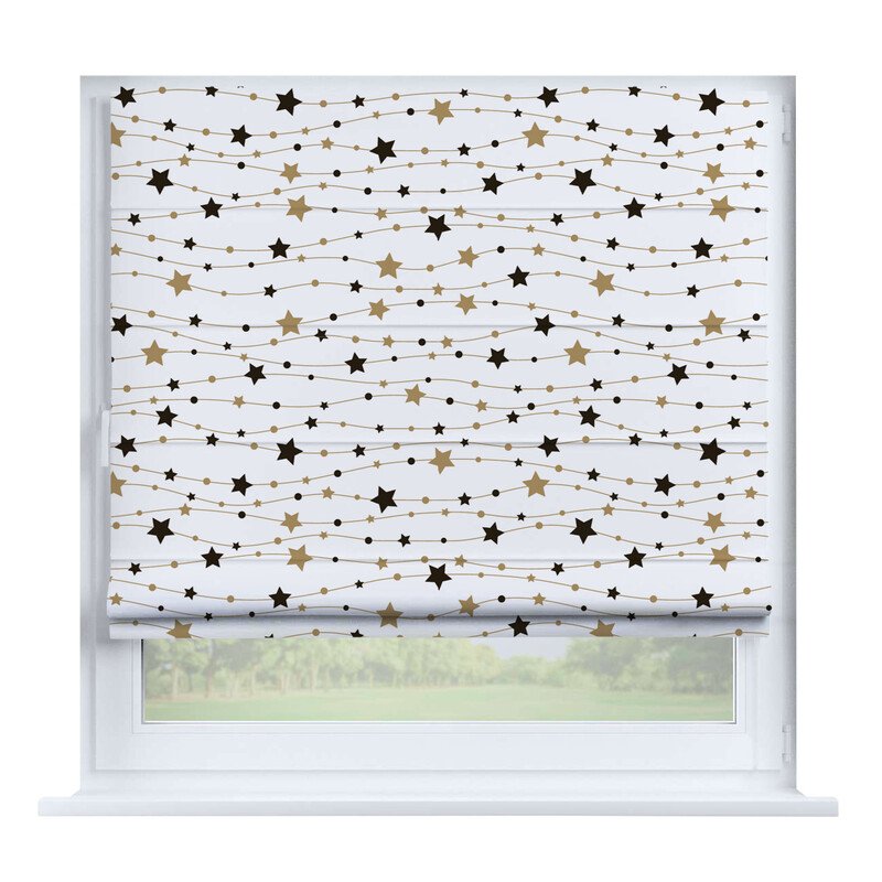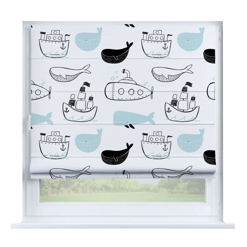 Короткие шторы в спальню. При подъеме тканевое полотно образует горизонтальные складки. Подходят для минималистичных, современных интерьеров. Экономят пространство и позволяют точно регулировать уровень света.